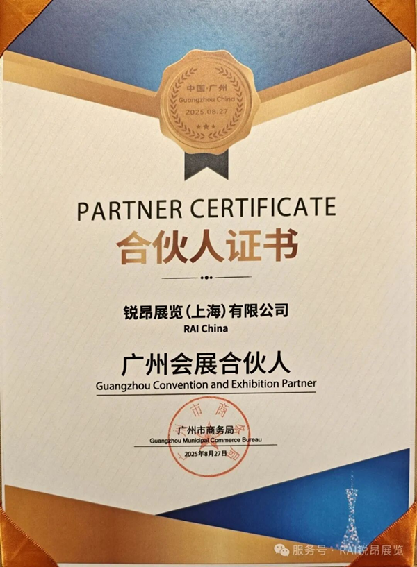 RAI China, together with more than 10 leading enterprises including Informa, RX, Sinopharm-Links, GL events and Messe Frankfurt, was awarded the "Guangzhou Convention and Exhibition Partner" certificate. Together, they are committed to building a collaborative ecosystem of "Government + Partners + Industry Players + Service Providers," positioning the MICE industry as a golden hallmark that empowers urban industrial growth and showcases the city's vibrant openness.